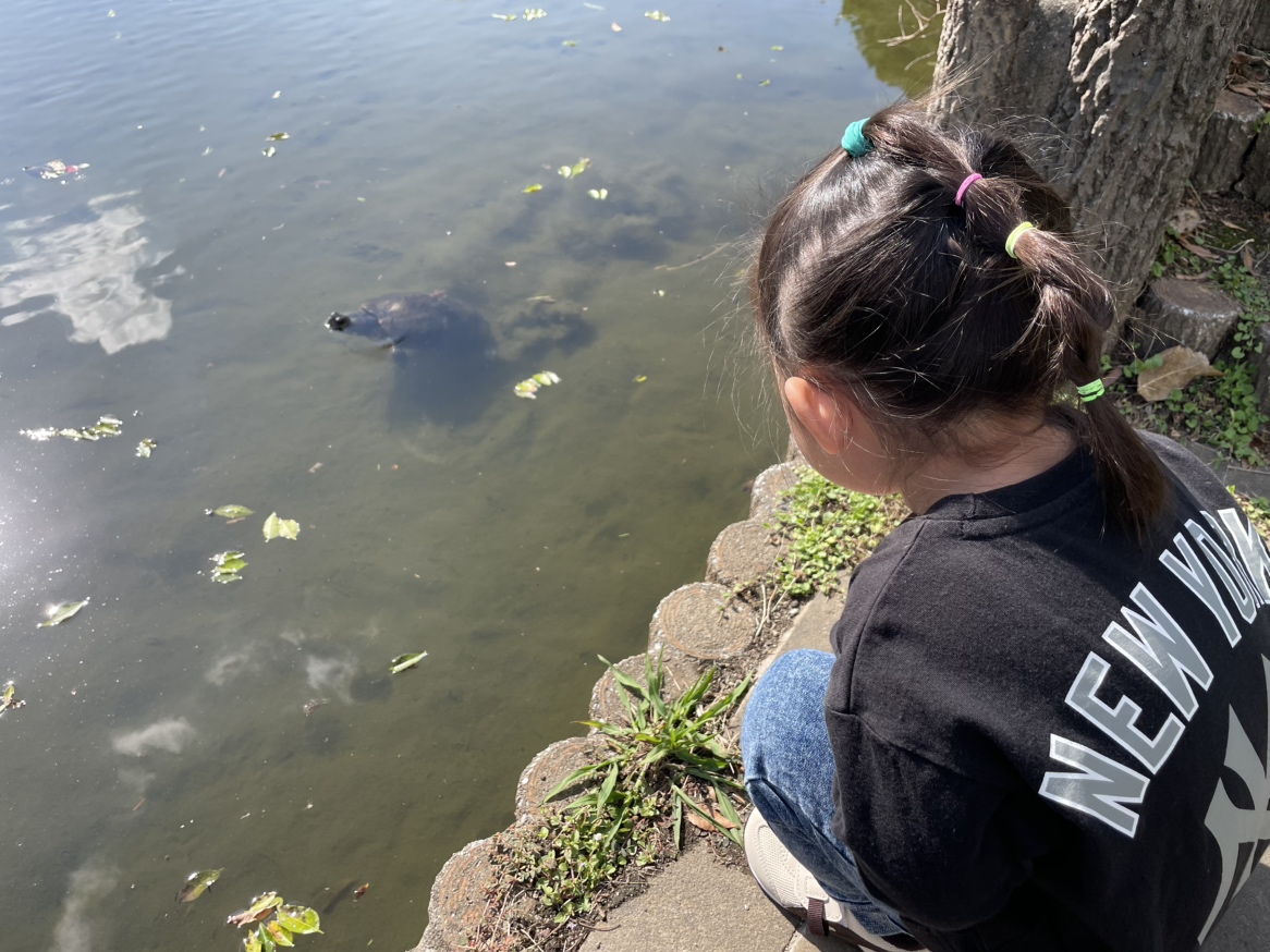 池にいた亀を見つけて眺めるだけ…