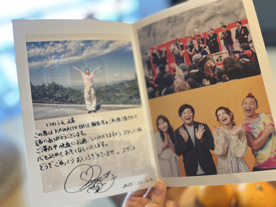 建岡さんに続きまして、私もUMICAHI5周年パーティー🎉の時にKAWACHIBASEペア宿泊券を当てさせていただきました👏👏