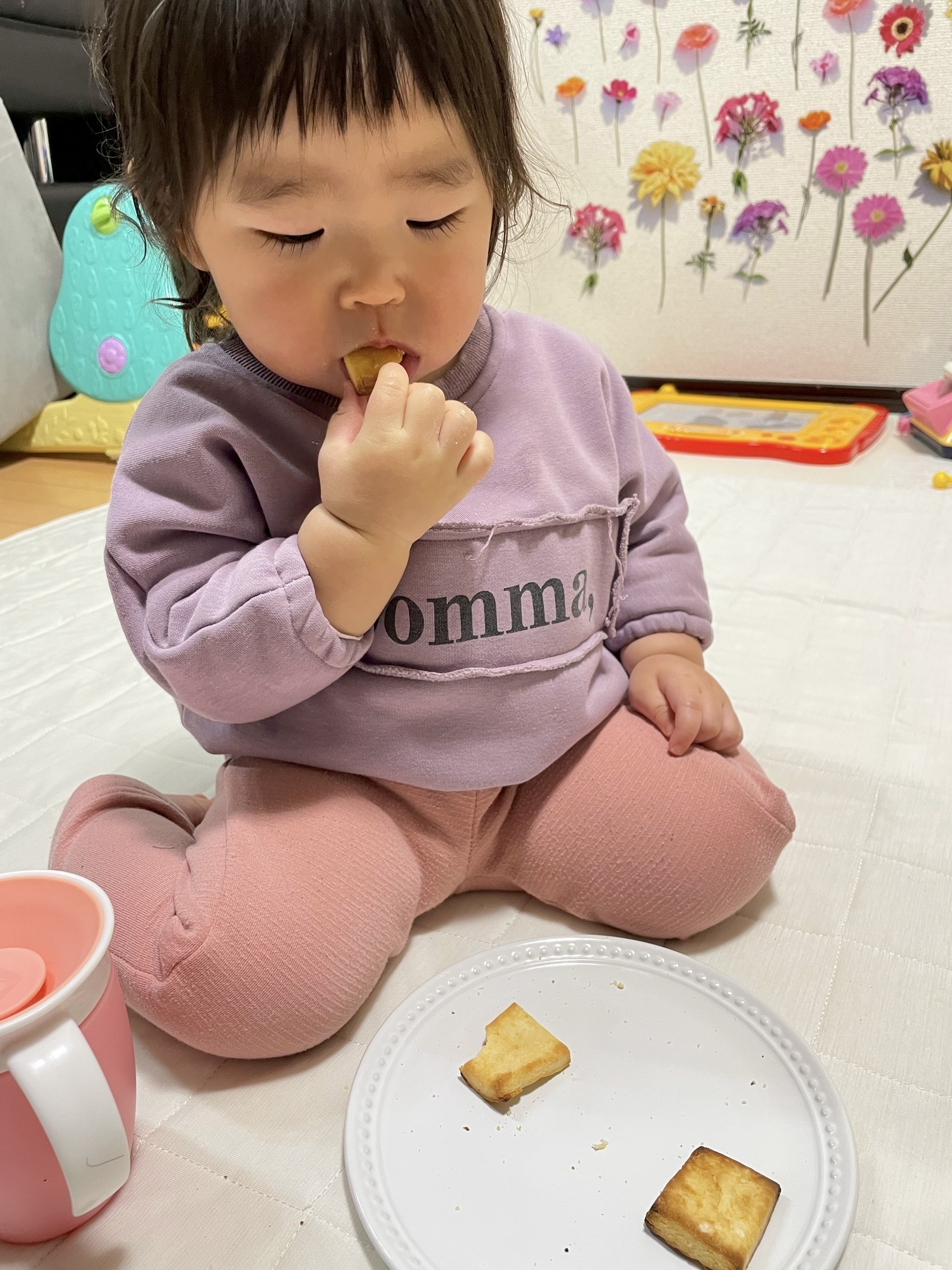 米粉使用と砂糖控えめでつくったので焼けたあとは一緒に食べました😋